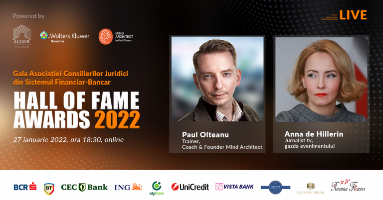 Vă invităm să participați la un eveniment special pentru întreaga suflare juridică, dedicat exclusiv juriștilor din sistemul financiar-bancar: #HallofFameAwards – pentru că juriștii noștri merită mult, mult mai mult! #Savethedate Evenimentul este organizat împreună cu partenerul nostru, Wolters Kluwer Romania și va avea loc în format fizic (dar va fi transmis și online), la Palatul BNR, sala Mitiță…
