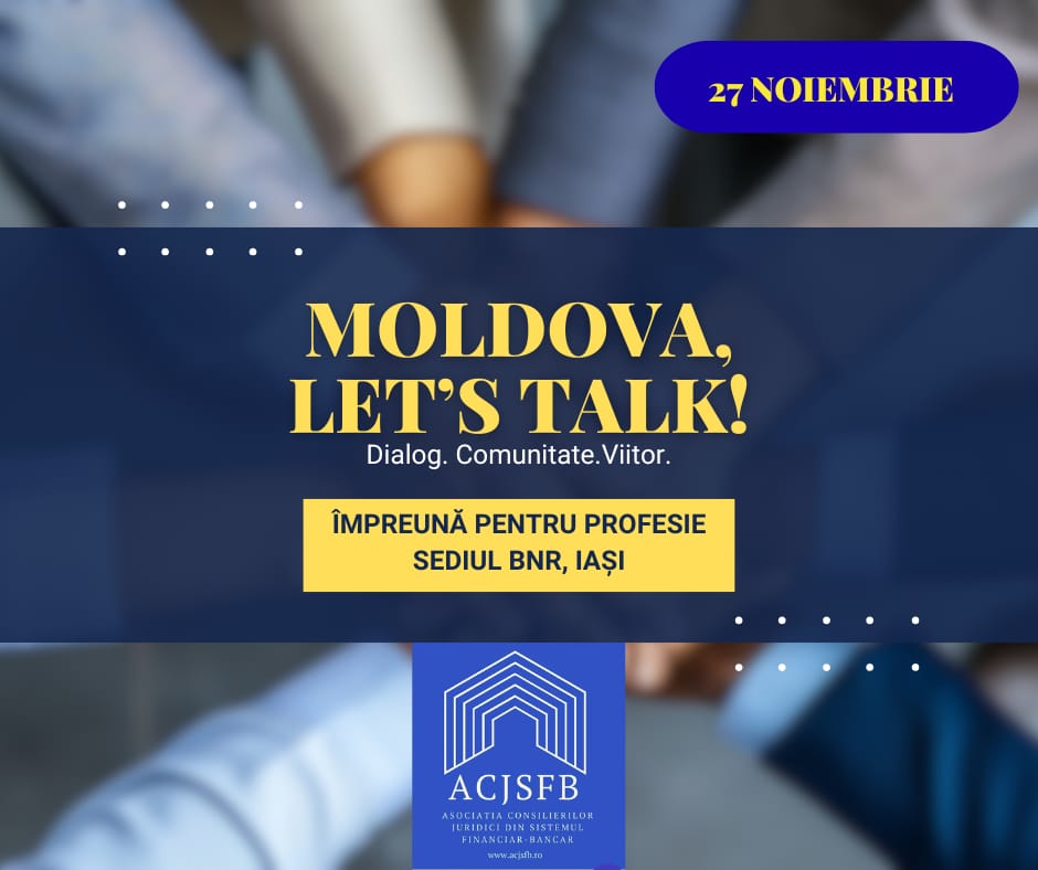 Dragi colegi,Asociația Consilierilor Juridici din Sistemul Financiar-Bancar face un nou pas spre apropierea de membri și deschide seria întâlnirilor regionale printr-un eveniment dedicat colegilor din zona Moldovei. Data: 27 noiembrie...